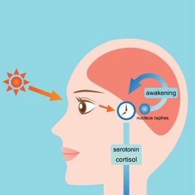 Blue-rich light stimulates cortisol and serotonin production in the morning to synchronize circadian rhythm and awaken, and during the day to maintain alertness and improve productivity.